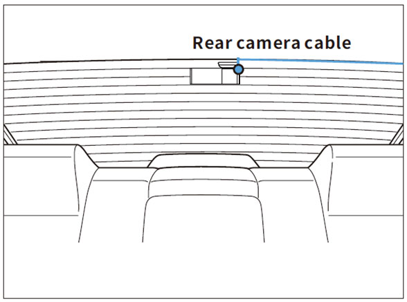 Install the rear camera at the top of the back windshield. Before installation, remove any foreign