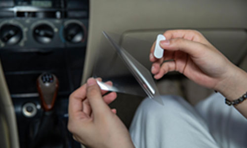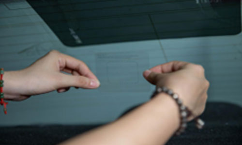 Tear off the small electrostatic sticker and attach it to the center of the rear windshield to install the rear camera.